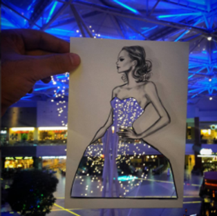 The unique thing about Shamekh is his way of getting inspired for his fashion illustrations. Everyday things are source of inspiration for his upcoming dress/costume design. The way I think he’s goes is juxtaposing the stencil of his dress design against the real world, try to fir that in the stencil and grab that flavour in his design.